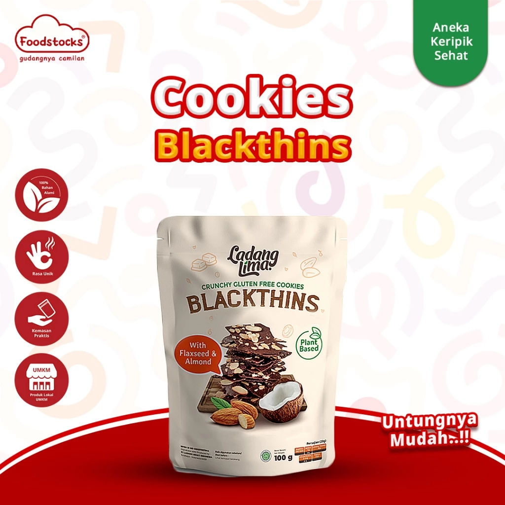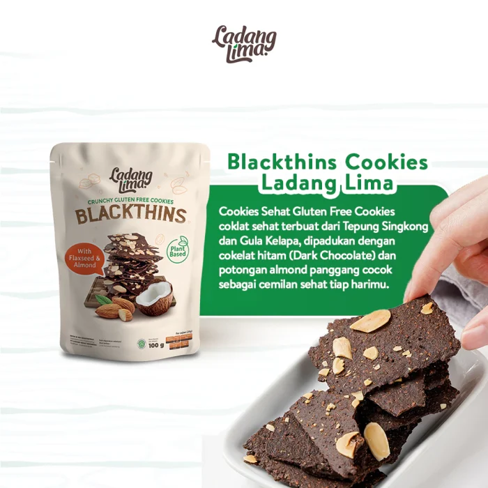 Ladang Lima – Blackthins Cookies 100g | Camilan Sehat Gluten Free | Cookies Cokelat Hitam